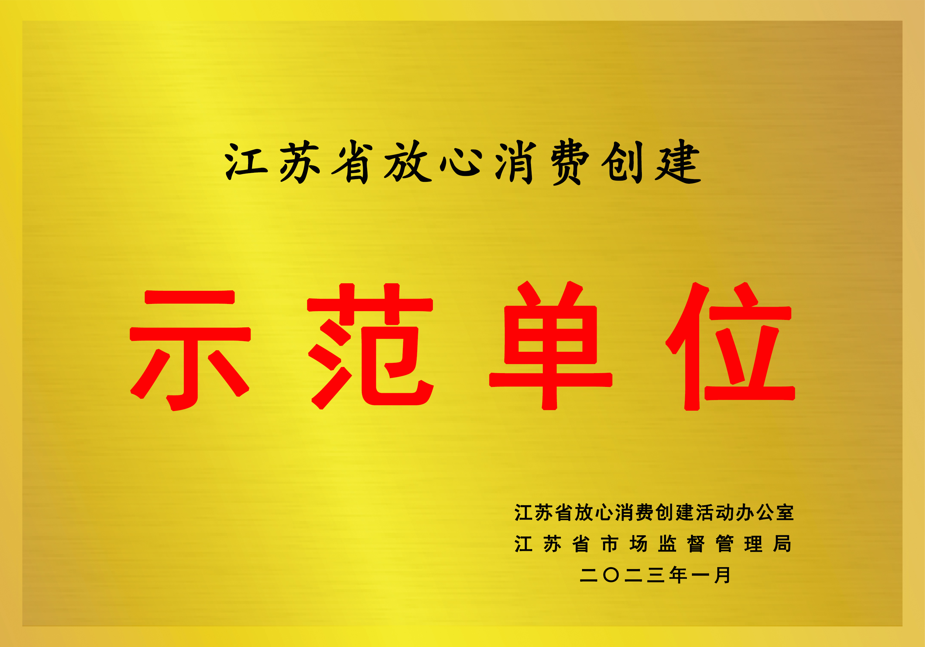 江蘇省放心消費創(chuàng)建示范單位