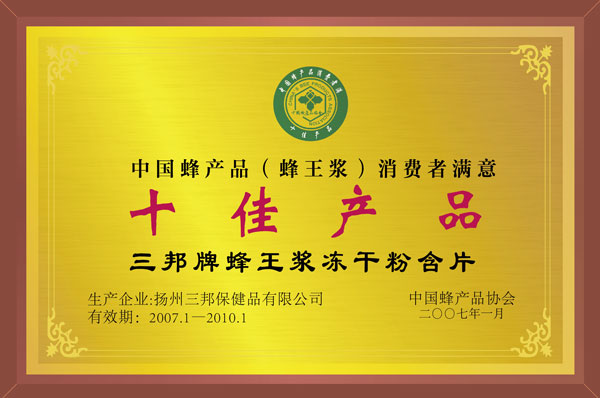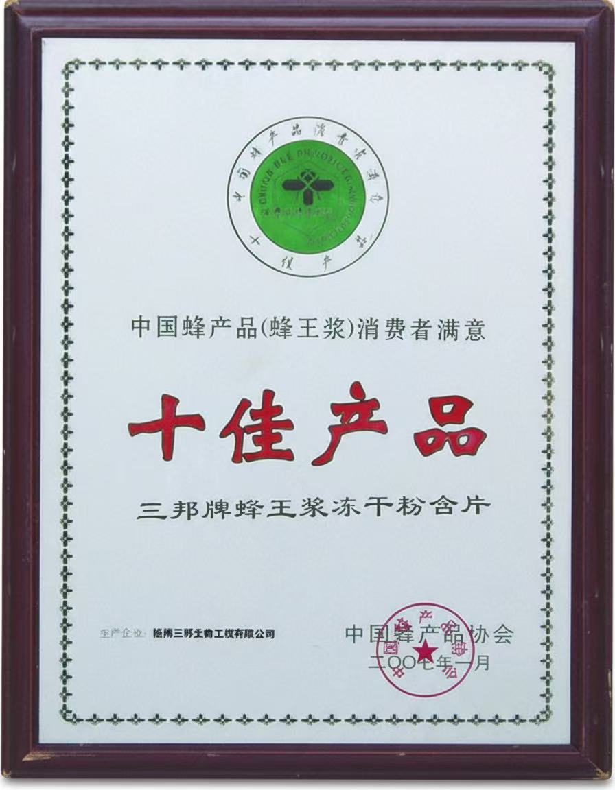 中國蜂產(chǎn)品消費者滿意十佳產(chǎn)品